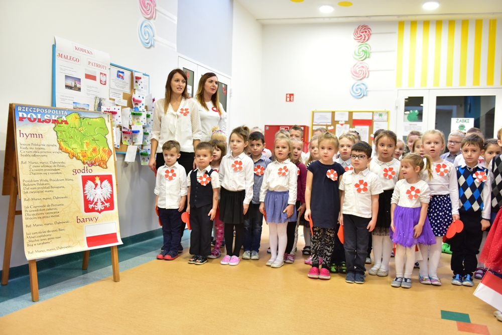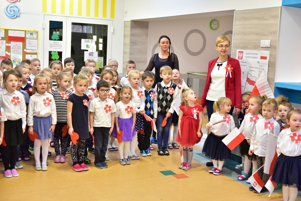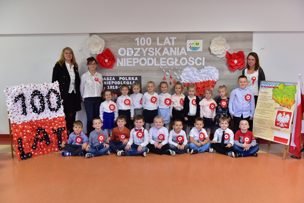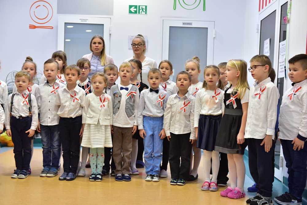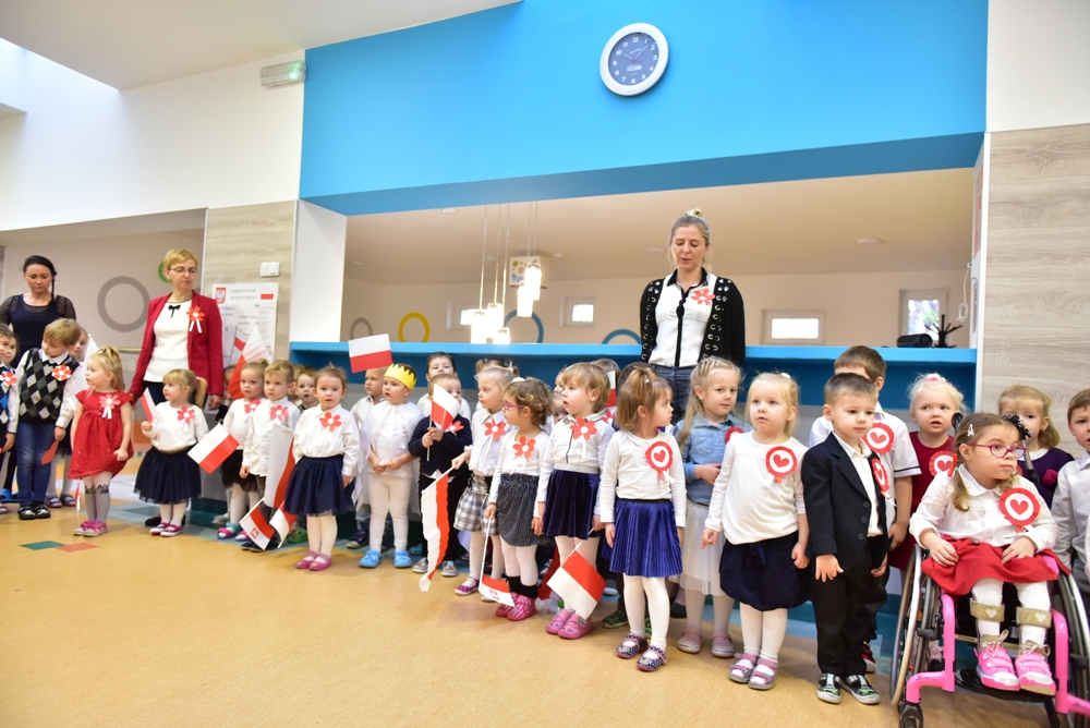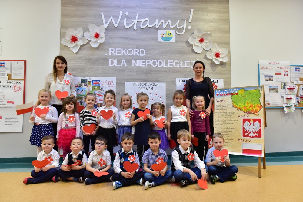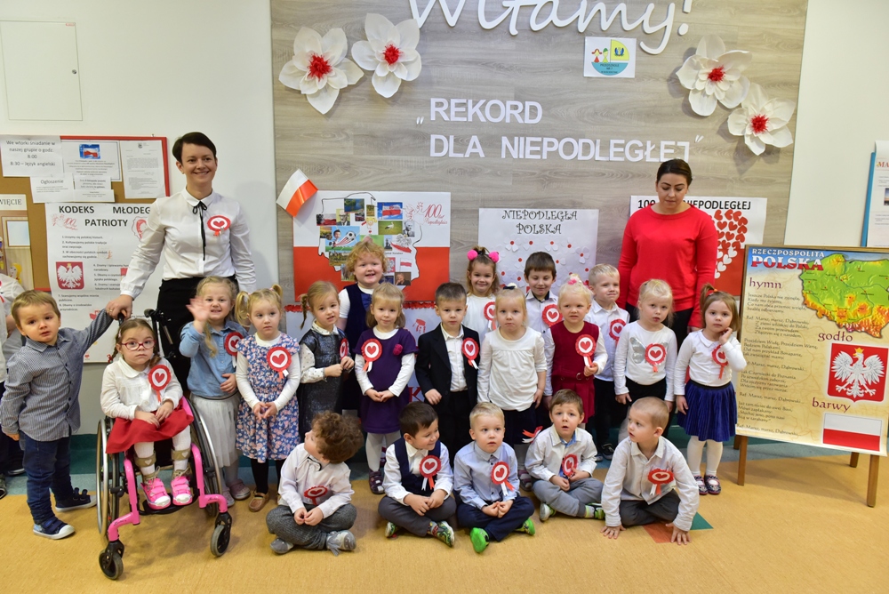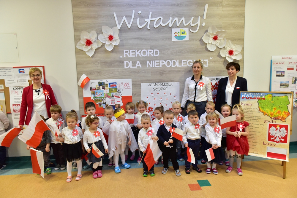 W Przedszkolu nr 7 w Kościerzynie oficjalne obchody setnej rocznicy odzyskania niepodległości rozpoczęły się już w piątek 9 listopada o godz. 11.11 biciem „Rekordu dla Niepodległej”. Wspólne odśpiewanie hymnu, uroczysta akademia, zaproszeni rodzice to budowanie poczucia tożsamości narodowej i kształtowanie patriotycznych postaw dzieci.