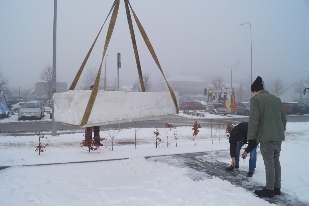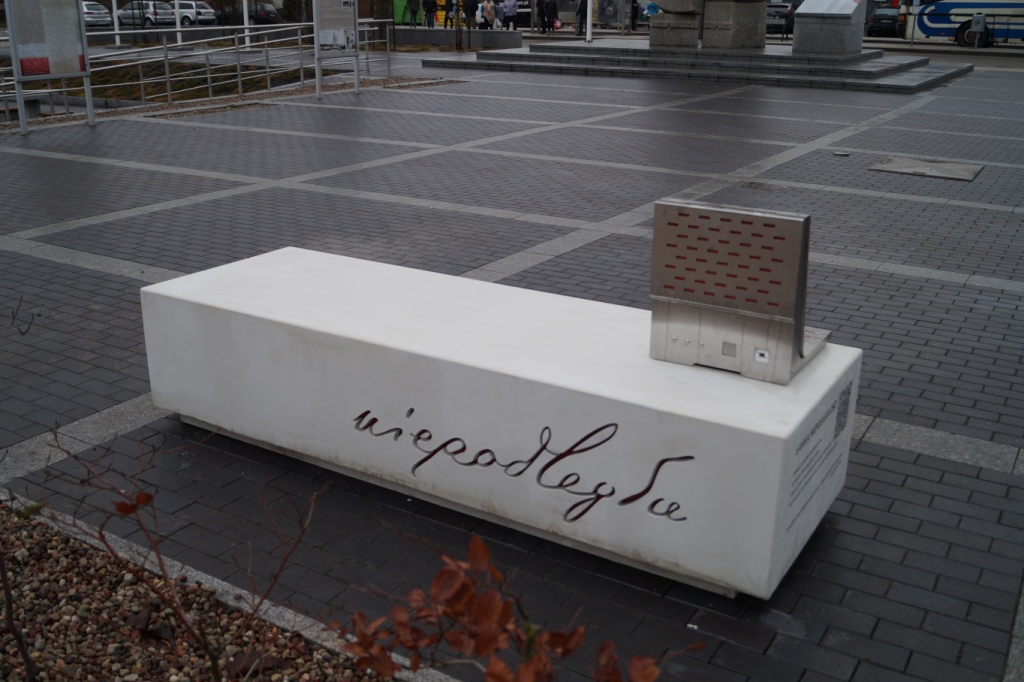 Siedząc na ławce można odsłuchać nagrania dźwiękowego: