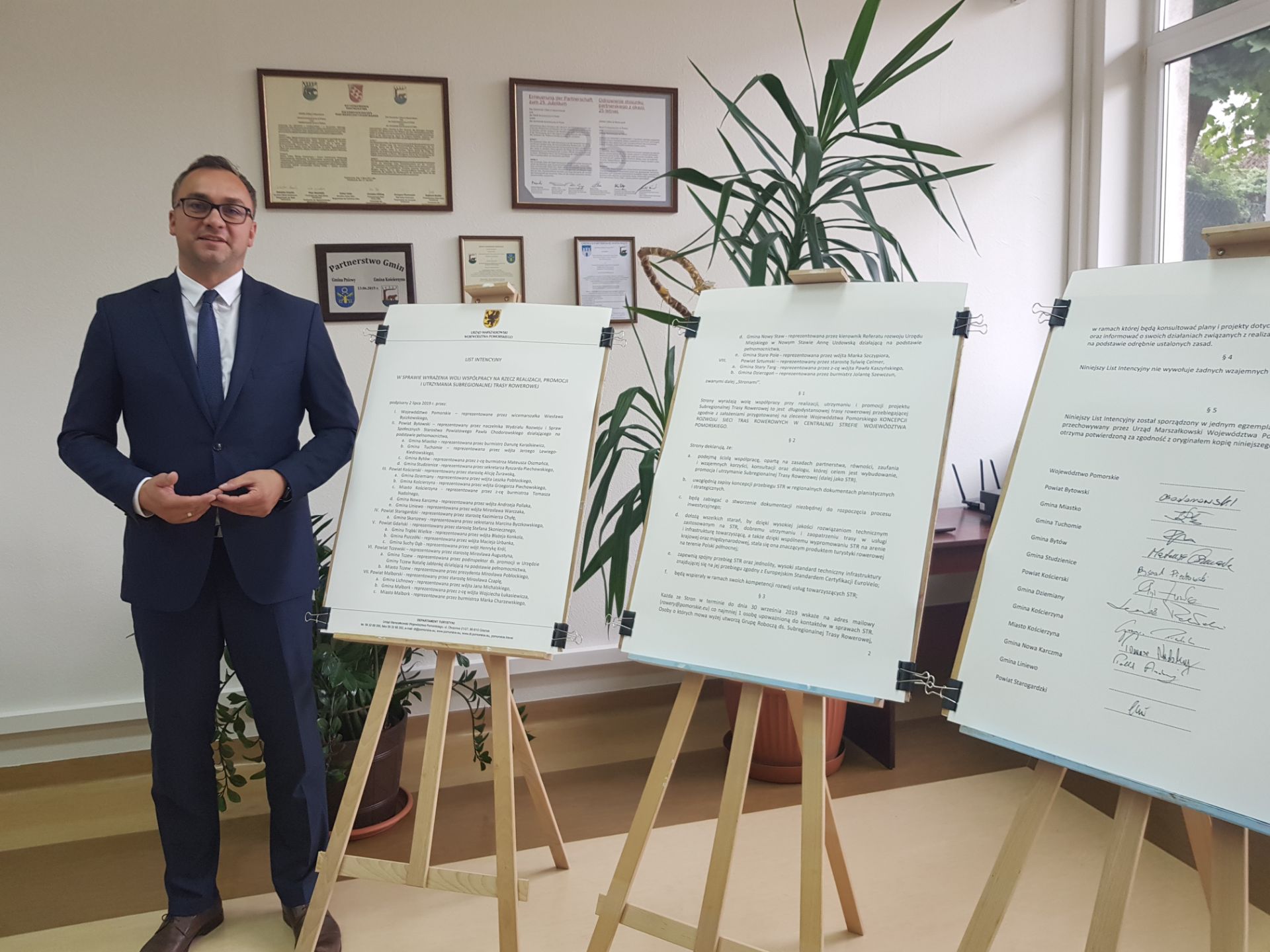 W dniu dzisiejszym, w siedzibie Gminy Kościerzyna, odbyło się uroczyste podpisanie Listu intencyjnego w sprawie realizacji wspólnego dla Województwa Pomorskiego projektu, polegającego na budowie Subregionalnej Trasy Rowerowej. W imieniu naszego Miasta List podpisał Pan Tomasz Nadolny Zastępca Burmistrza, potwierdzając tym samym uwzględnianie koncepcji przebiegu Subriegionalnej Trasy Rowerowej w dokumentach planistycznych i strategicznych, a w dalszej perspektywie także do budowy, promocji i utrzymania Trasy Rowerowej przebiegającej po naszym terenie. Docelowo trasa przebiegać będzie przez pięć Państw: Niemcy - początek trasy w Berlinie, Polskę, Litwę, Łotwę i Estonię – koniec trasy w Tallinie, a jej zaplanowana łączna długość to 1800 km. Trasa przebiegać będzie również przez nasze Miasto z czego ogromnie się cieszymy i deklarujemy pełną gotowość do współpracy.