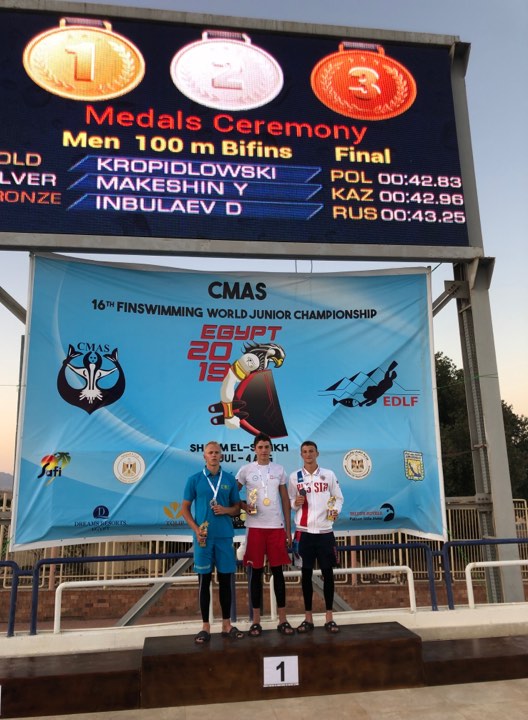 Sztafeta 4 x 100 bifins MIX w składzie Balbina Sikora, Marta Humerczyk, Paweł Masalski i Szymon Kropidłowski zakwalifikowała się do finału Mistrzostw Świata podczas którego nasi młodzi zawodnicy zajęli 7 miejsce. Reprezentacja Polski wyjechała do Egiptu pod opieką trenerów Włodzimierza Urbanowskiego i Mateusza Szurmieja.