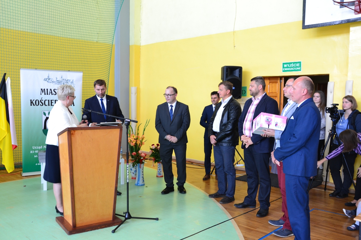 W trakcie uroczystości podziękowania za pomoc w realizacji tego przedsięwzięcia otrzymali darczyńcy, pracownicy szkoły oraz pani architekt Małgorzata Kulawczuk-Gruba.