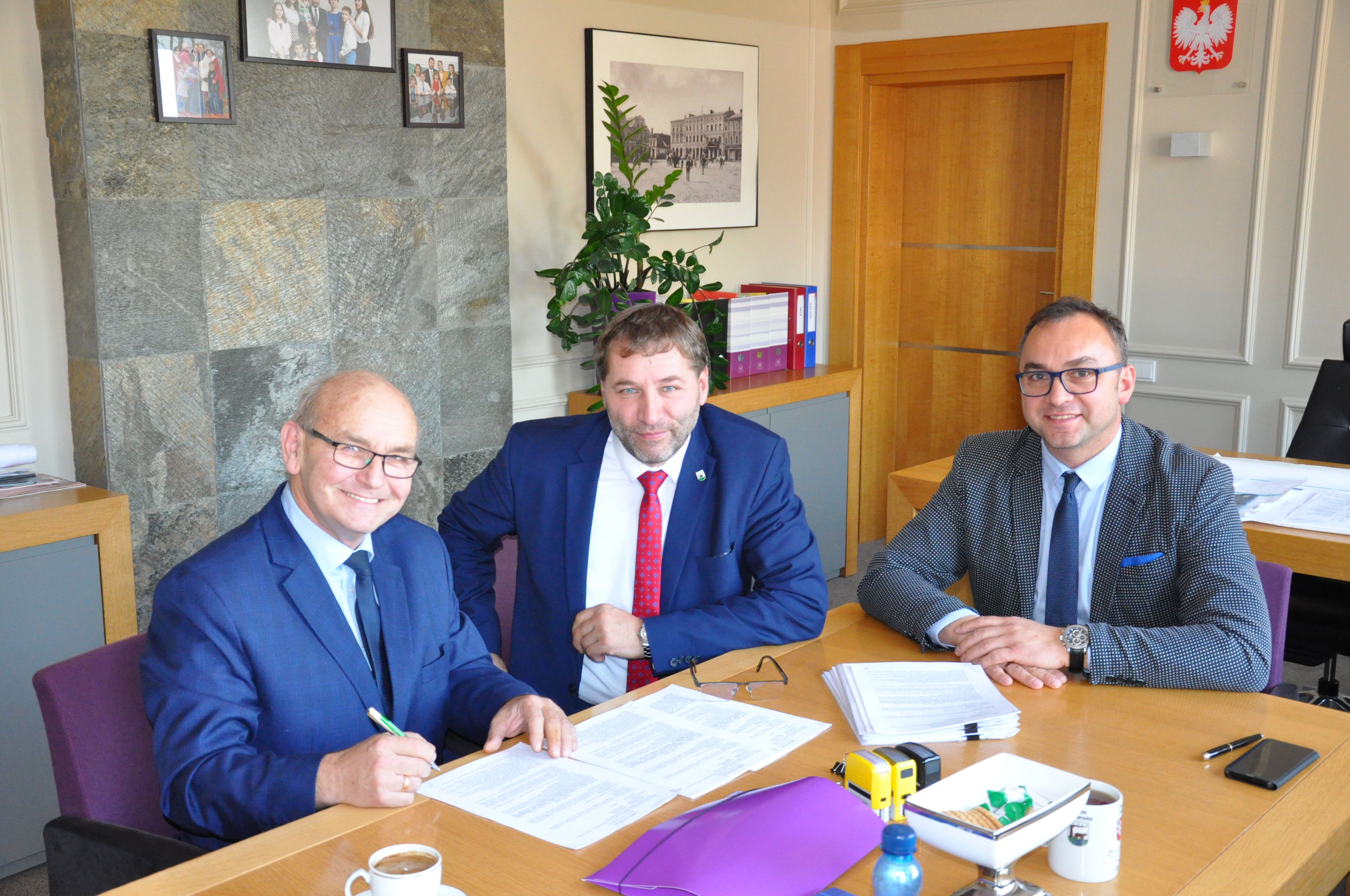 W dniu dzisiejszym czyli 15 października 2019 roku Burmistrz Miasta podpisał umowy z Wykonawcą, wybranym w drodze przetargu nieograniczonego, na realizację wszystkich trzech zadań, które uzyskały dofinansowanie z Funduszu Dróg Samorządowych.