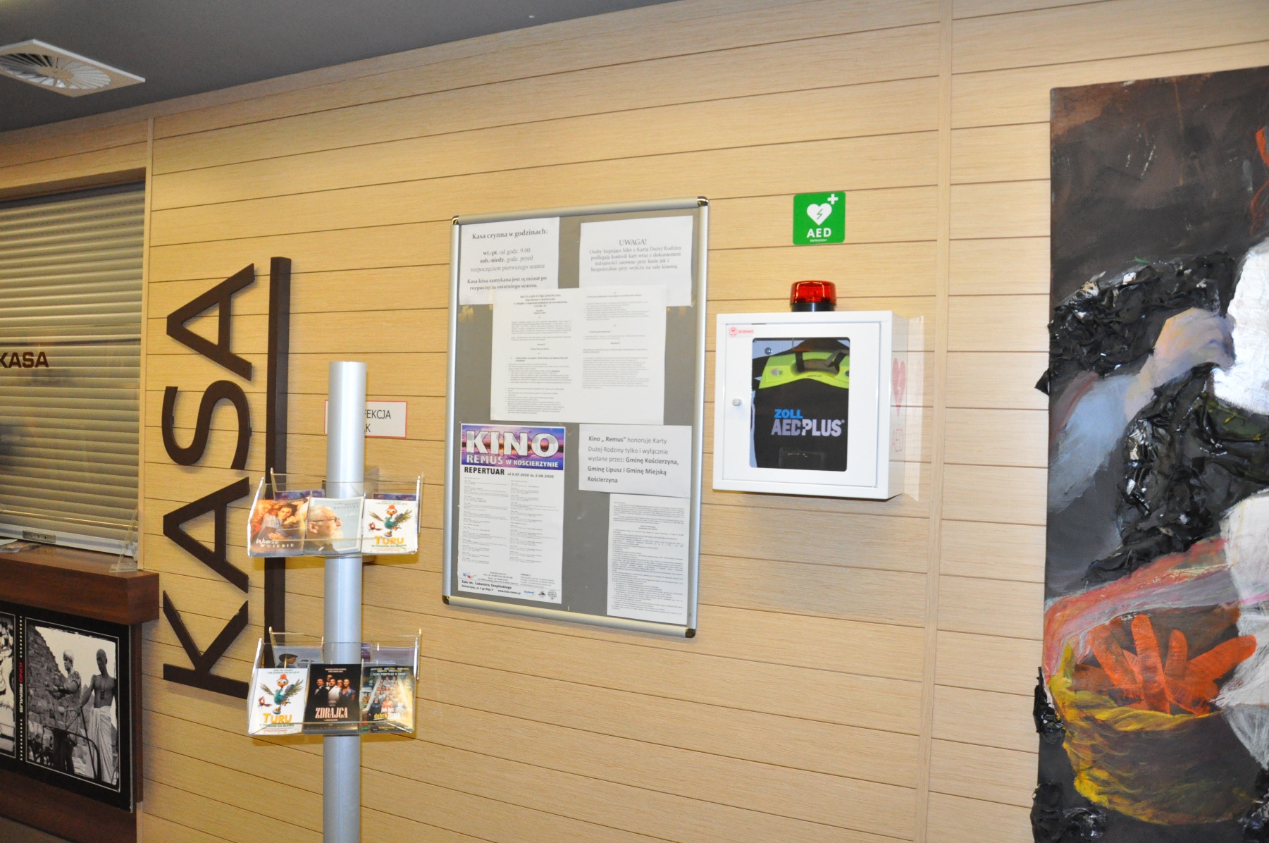 Ze środków Gminnego Programu Rozwiązywania Problemów Alkoholowych dla miasta Kościerzyna na rok 2020 oraz Miejskiej Komisji Rozwiązywania Problemów Alkoholowych w Kościerzynie finansowano zakup trzech defibrylatorów. Dwa z nich umieszczono w obiektach: pierwszy w holu Sali Widowiskowej im. Lubomira Szopińskiego przy ul. 3 Maja; drugi w poczekalni dworca PKP. Oba urządzenia umieszczono w specjalnych szafkach, a miejsca ich przechowywania oznakowano w widoczny sposób. Są one bardzo proste w obsłudze, instruują poleceniami głosowymi krok po kroku jak udzielić potrzebującemu pomocy, nawet osoba, która nie przeszła specjalistycznego kursu bez większego problemu będzie w stanie z nich skorzystać.