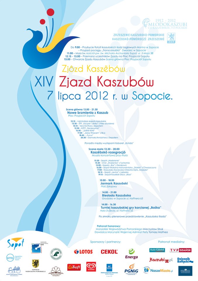 Zrzeszenie Kaszubsko-Pomorskie pragnie zaprosić każdego: Małego i Dużego, Kaszubę i nie tylko, Mieszkańca i Turystę do udziału w XIV Zjeździe Kaszubów, który odbędzie się 7 lipca w Sopocie! Jest to coroczne plenerowe spotkanie z muzyką i kulturą naszej małej ojczyzny – Kaszub.