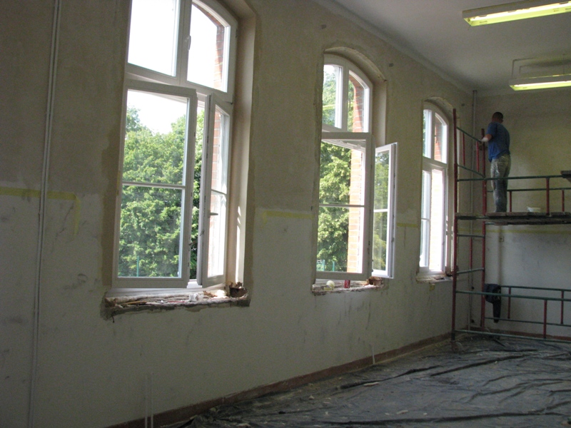 Z uwagi na konieczność powtórzenia procedury przetargowej prace remontowe z Szkole Podstawowej nr 1 rozpoczęły się dopiero w połowie lipca. Stolarkę okienną będzie montował ten sam wykonawca co w SP nr 2. Jego doświadczenie w realizacji podobnych inwestycji daje gwarancję wysokiej jakości wykonanych okien. Bardzo sprawnie przebiegają roboty instalacyjne.