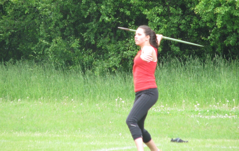 Zawody lekkoatletyczne (rzut oszczepem) dla szkół średnich z Kościerzyny