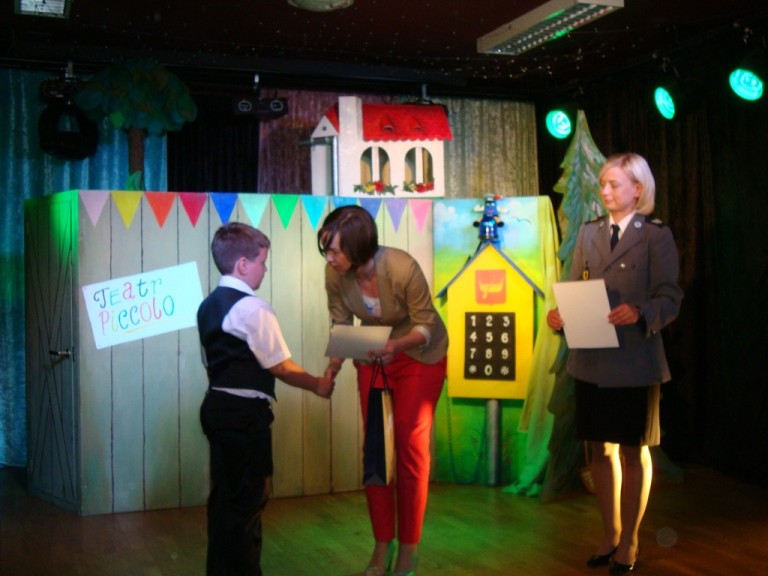 Wszyscy otrzymali medale „Małego ambasadora bezpieczeństwa” oraz upominki. Dla finalisty konkursu oraz dla szkoły organizatorzy ufundowali wspaniałe nagrody w postaci trzech rowerów, kasków i kamizelek odblaskowych oraz znaków drogowych do szkolnego miasteczka ruchu drogowego.