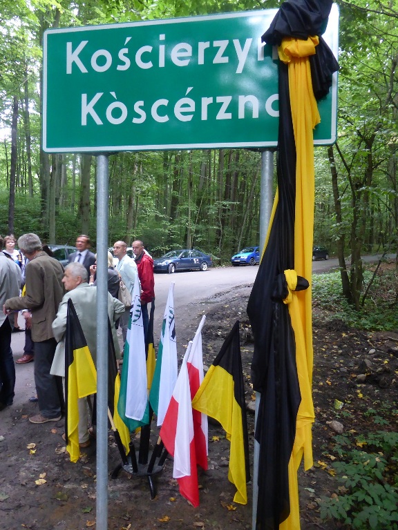 Dnia 6 maja 2013 roku Gmina Miejska Kościerzyna, na wniosek Rady Miasta Kościerzyna, została wpisana do rejestru gmin, na obszarze których używane są dodatkowe nazwy miejscowości lub obiektów fizjograficznych albo ulic w języku mniejszości, co umożliwiło podjęcie kolejnych kroków w procesie postawienia na wjazdach do Kościerzyny tablic dwujęzycznych. Tablice zostały zamontowane, a finansowanie tego przedsięwzięcia nastąpiło na podstawie porozumienia zawartego z Ministerstwem Administracji i Cyfryzacji.